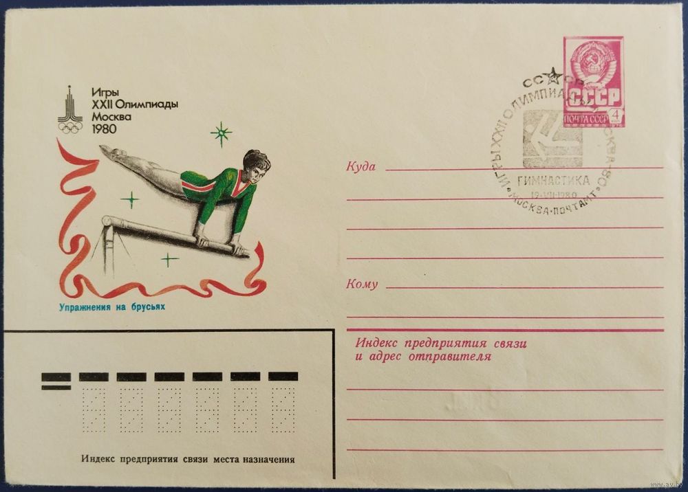 ХМК. Упражнения на брусьях. Спецгашение. 1980 г.