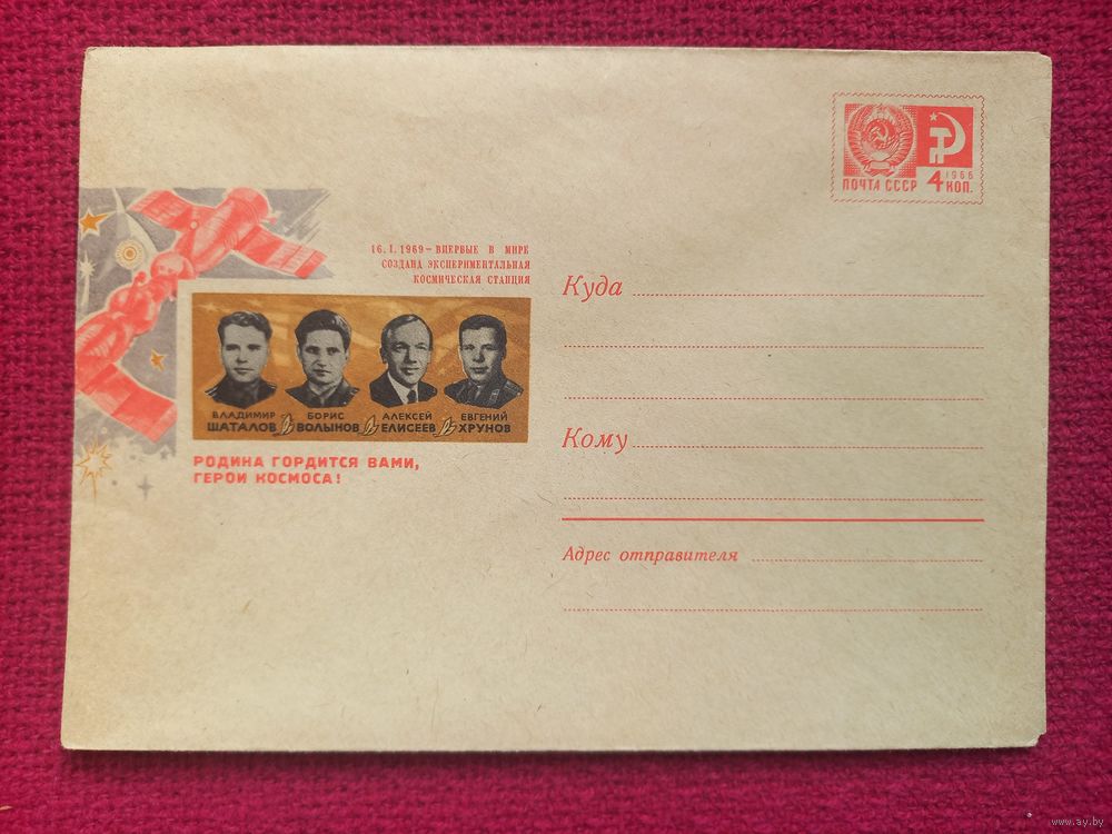 ХМК. Впервые в мире создана экспериментальная космическая станция. Космонавты Шаталов, Волынов, Елисеев, Хрунов. Анискин 1969 г. Чистый.
