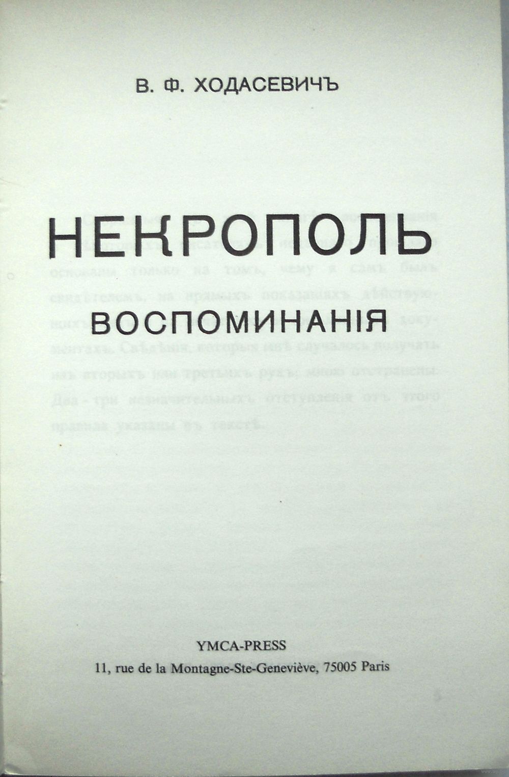 Мягкий переплет. 280 страниц; Издательство: Paris: YMCA-PRESS, 1976 Репринтное воспроизведение первого издания (Брюсель) Ходасевич "Некрополь".