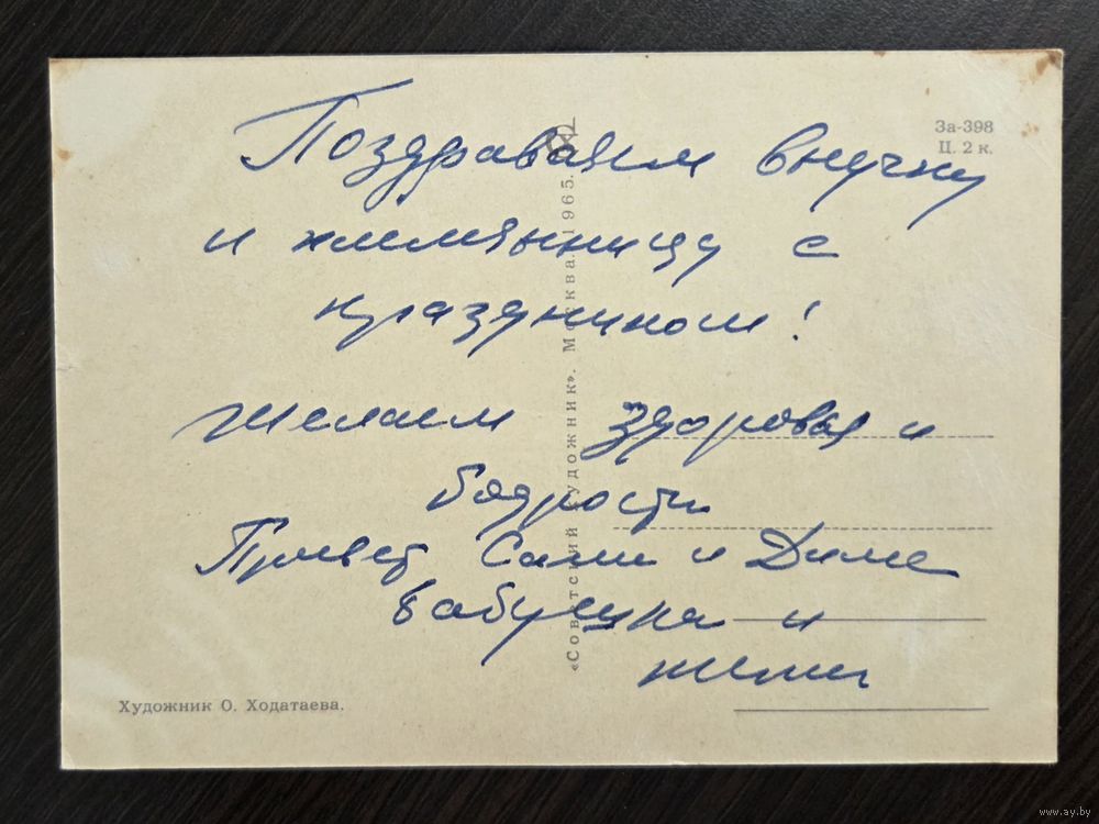 Ходатаева С праздником 1965 подписанная открытка СССР