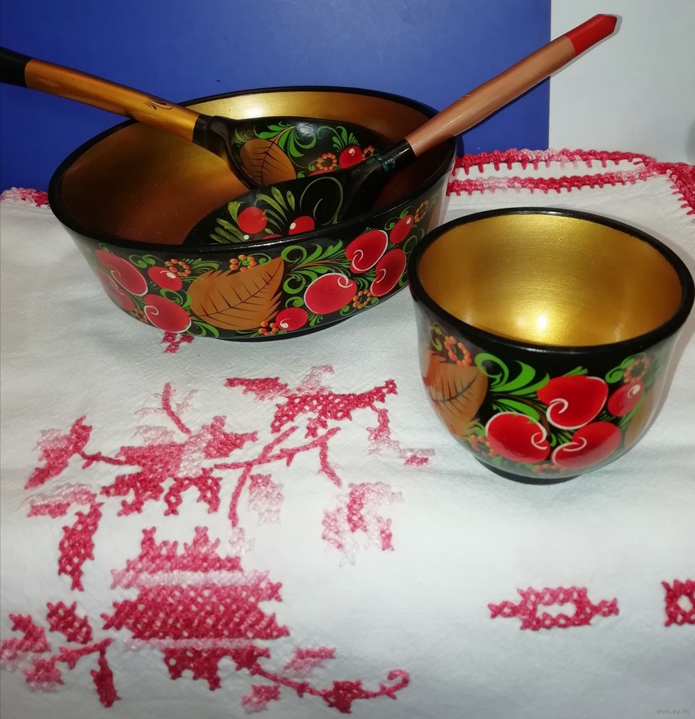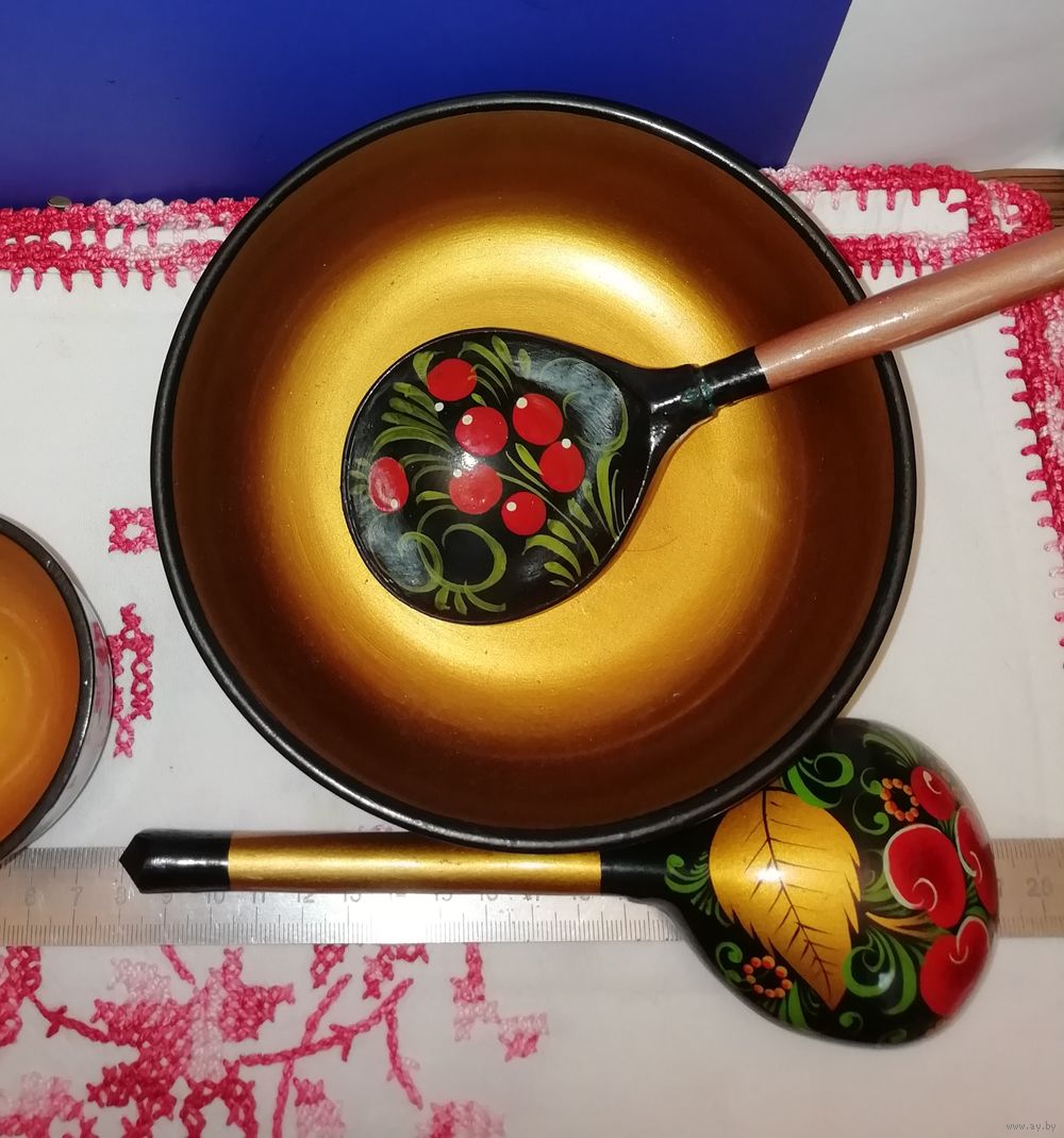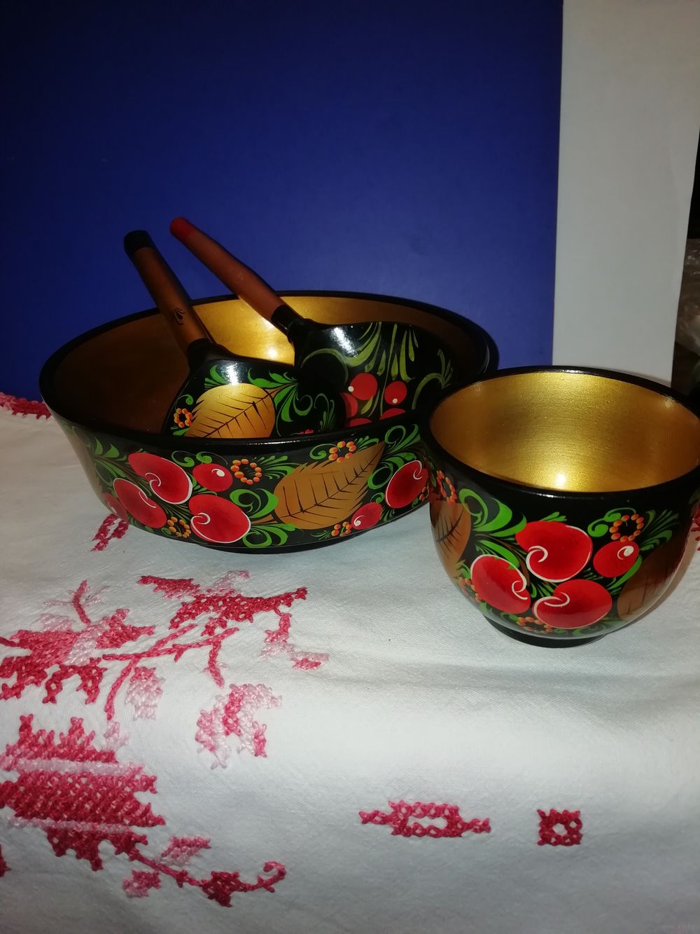 | Деревянная посуда с прекрасной Хохламской росписью, в новом состоянии. Произведена и куплена во времена СССР. Прекрассная энергетика и польза-это дерево для употребления пищи. | |