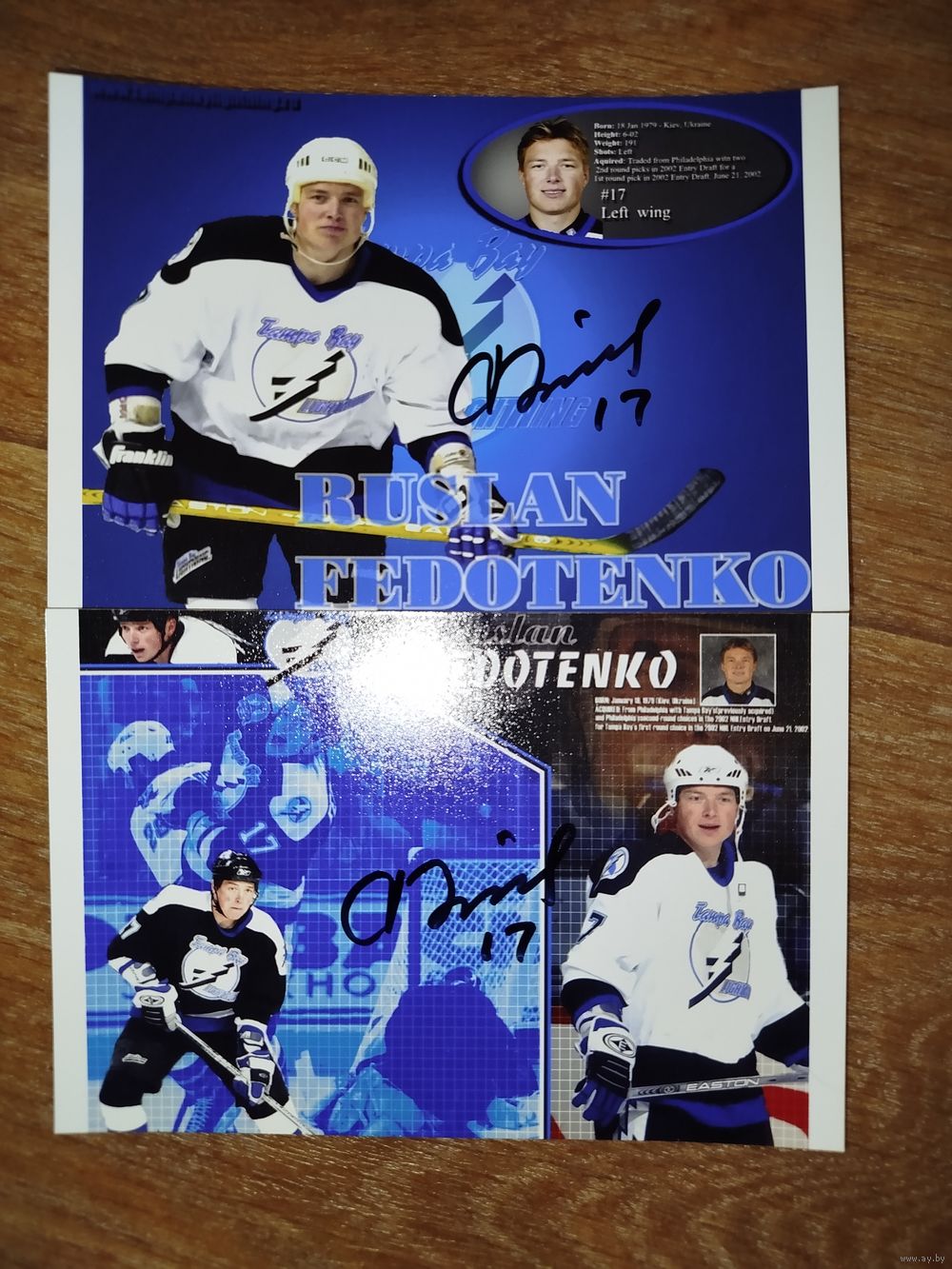 Хоккейные фото. Руслан Федотенко. 2 фото 10 на 15 с автографами