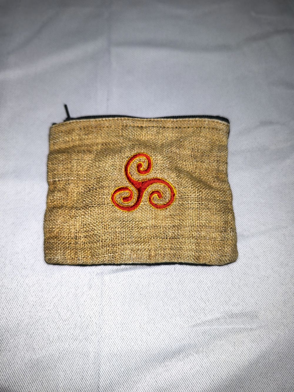 Небольшой кошелёк на молнии, из хлопковой ткани и мешковины.