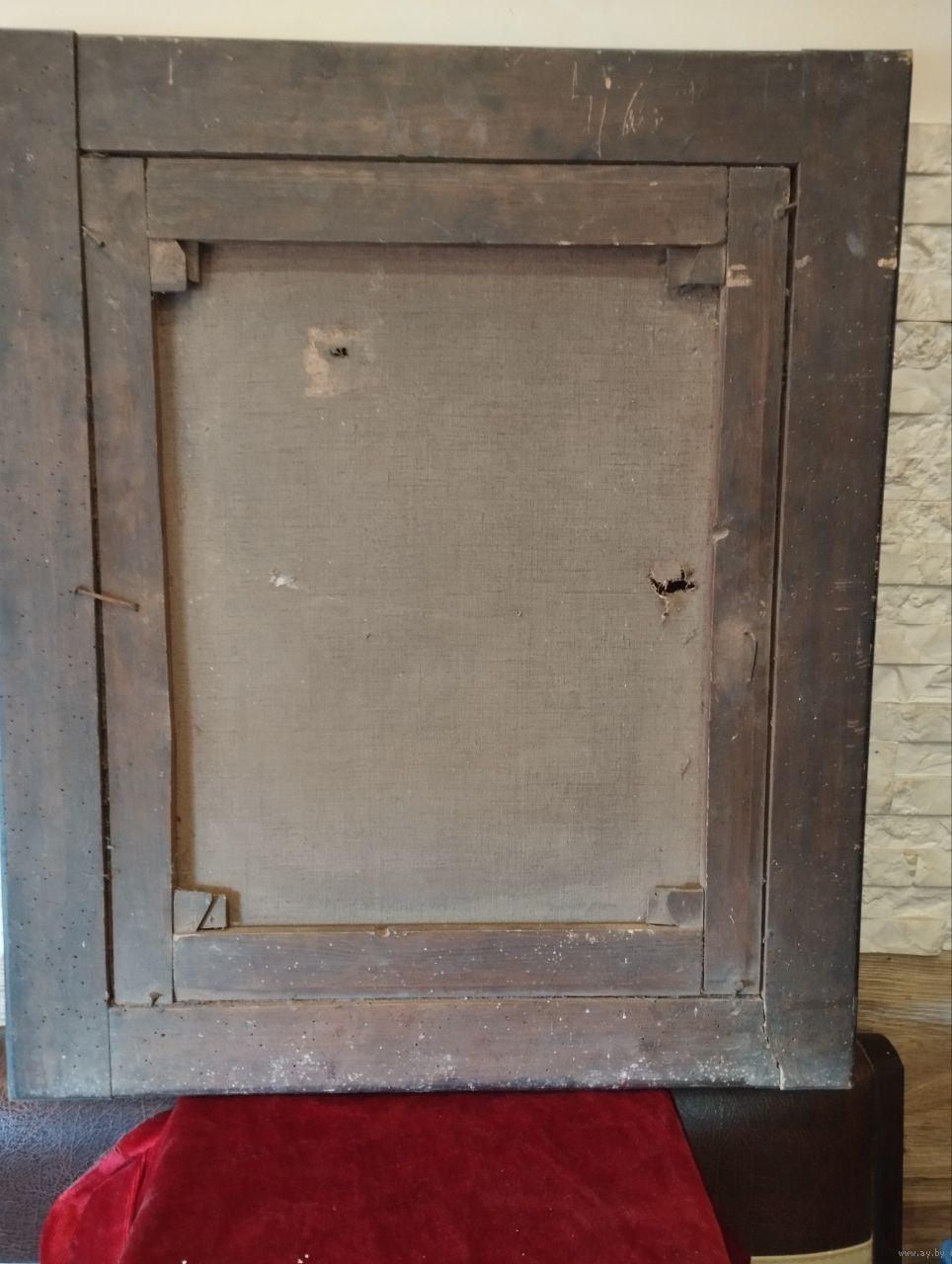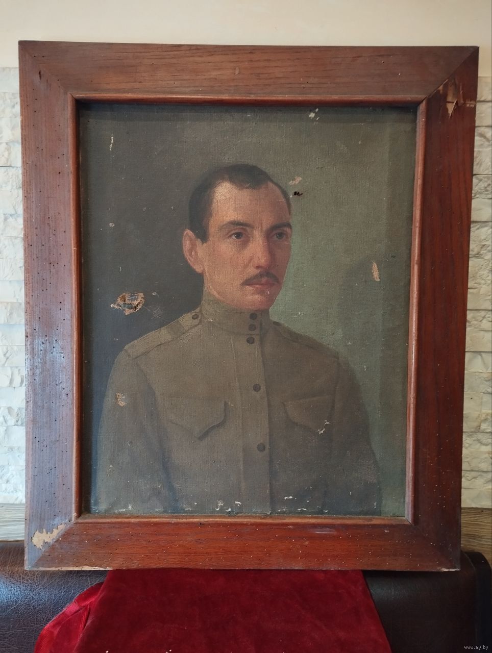 Холст старинного письма портрет военнослужащего, размер по подрамнику 43х53 см