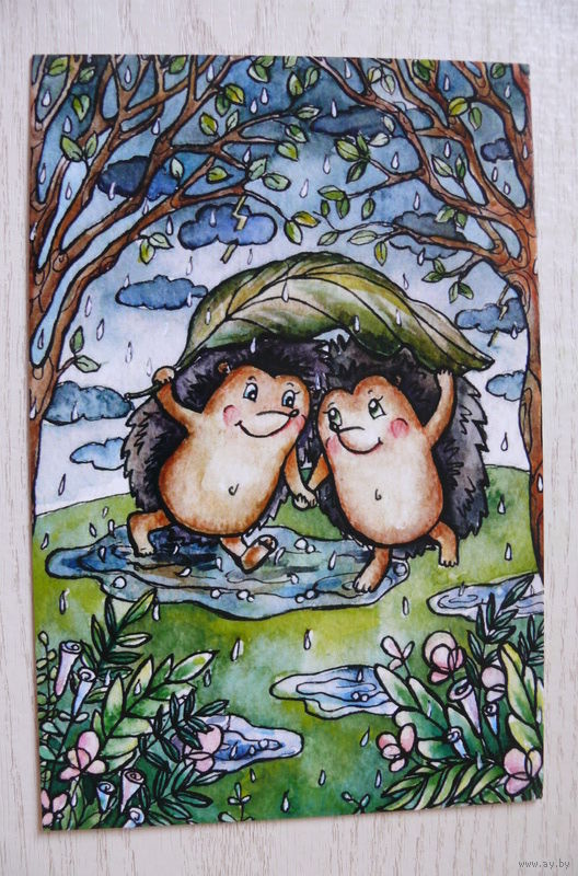 Хомякова Марина, Ежики, лето, дождь; чистая, изд. до 2000г.