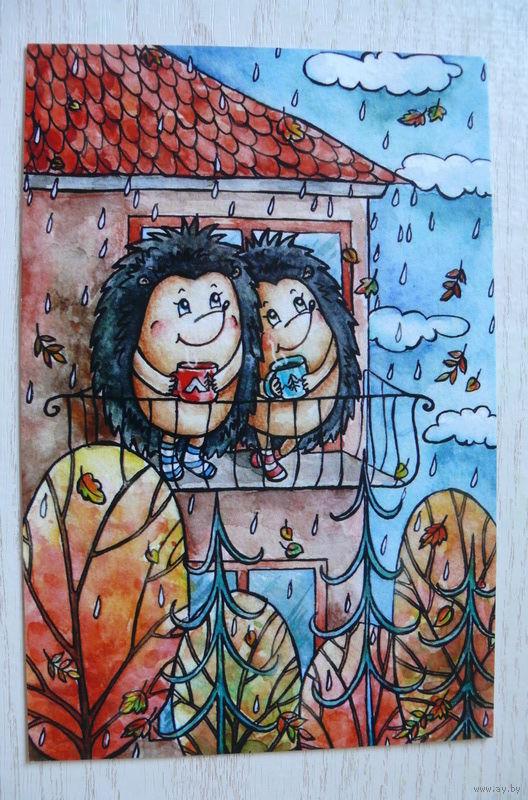 Хомякова Марина, Ежики, осень; чистая, изд. до 2000г.