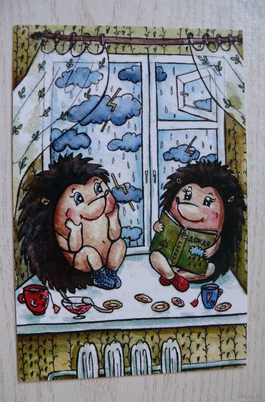 Хомякова Марина, Ежики, осень, дождь; чистая, изд. до 2000г.