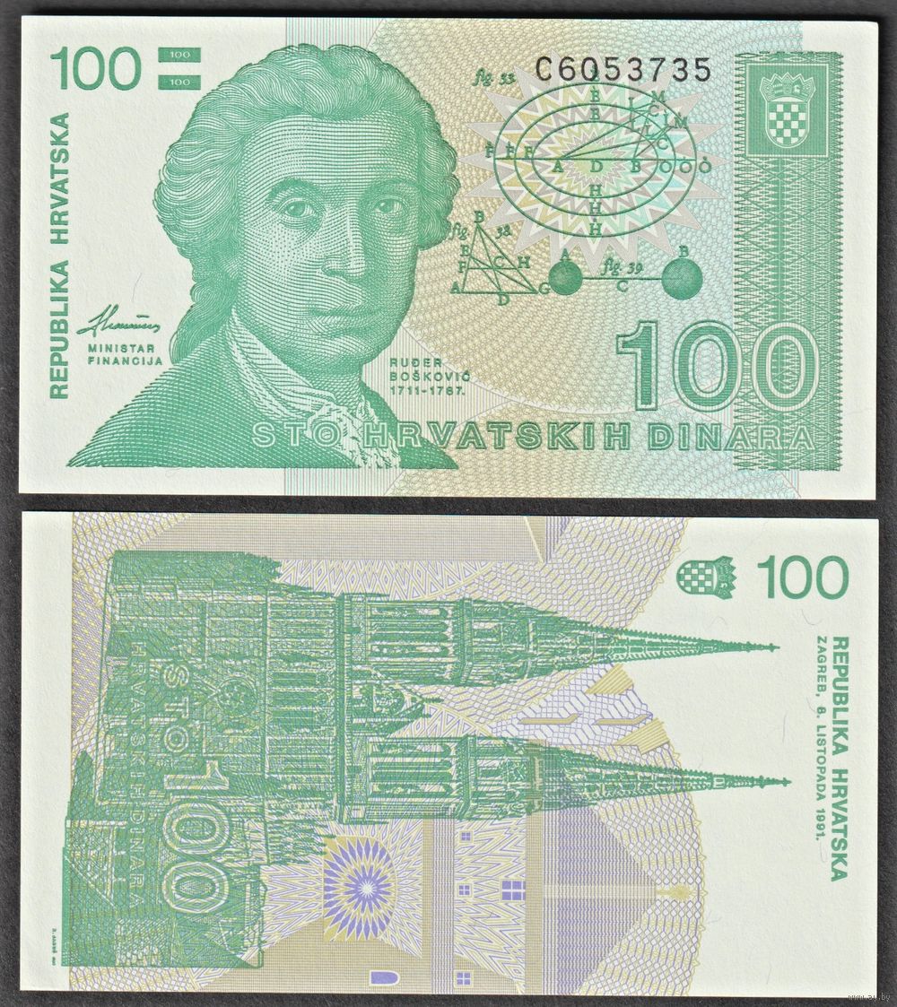 Хорватия 100 динаров образца 1991 года UNC p20 серия А