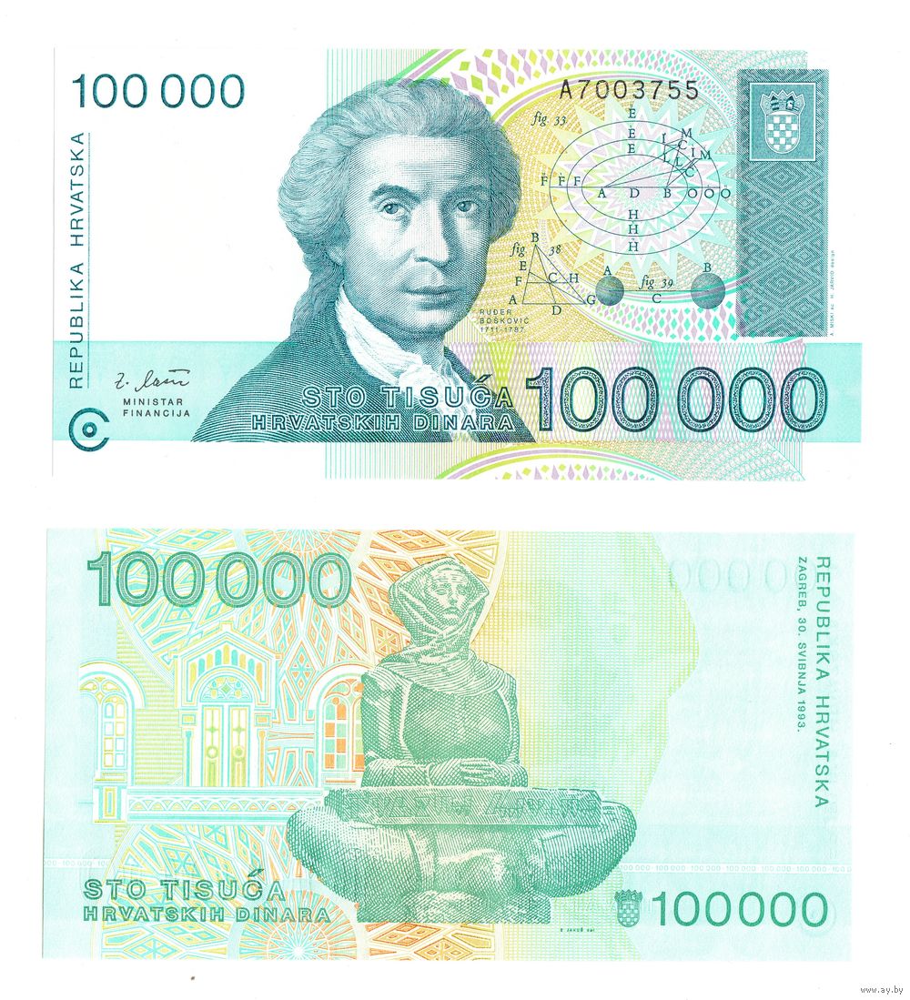 Хорватия 100000 Динар 1993 год серия A