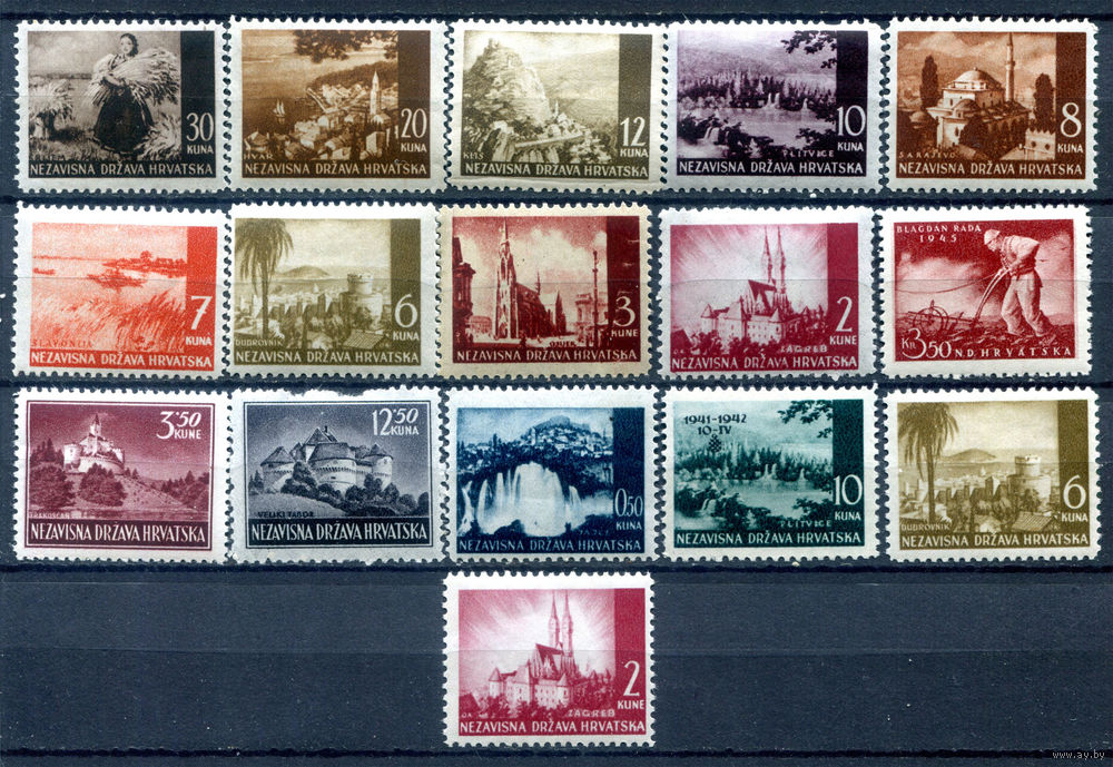 Хорватия - 16 марок - MNH, у нескольких марок есть отпечатки, трещинки на клее, 1 с повреждением клея. #O-W-130-C-1