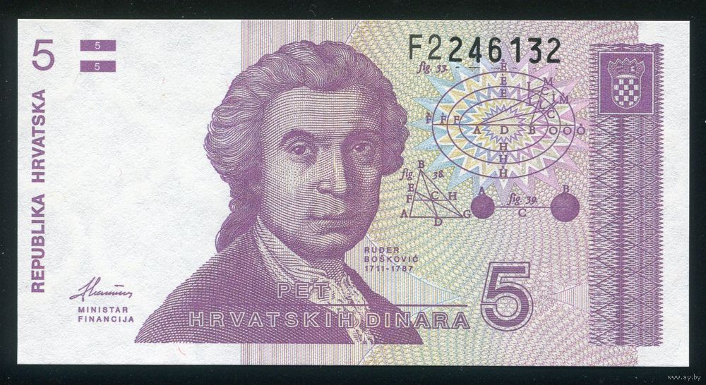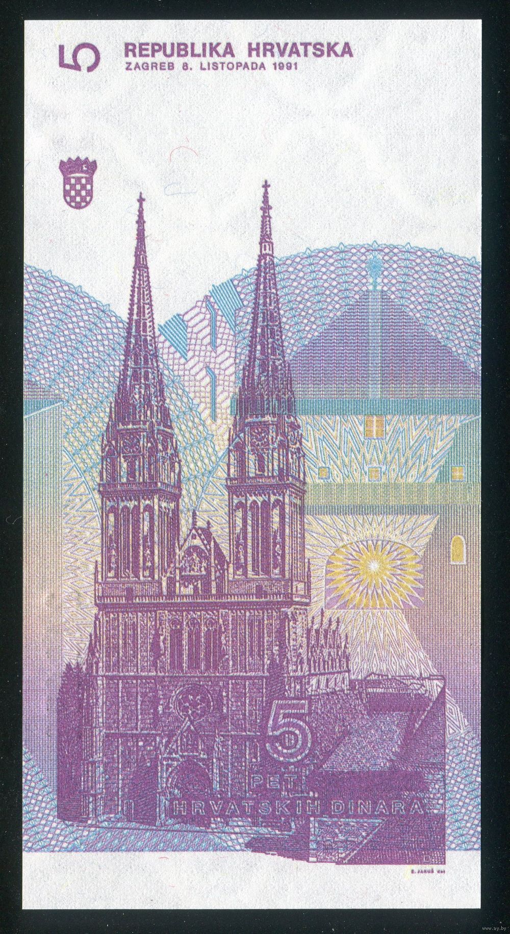 Хорватия 5 динар 1991 г. P17. Серия F. UNC