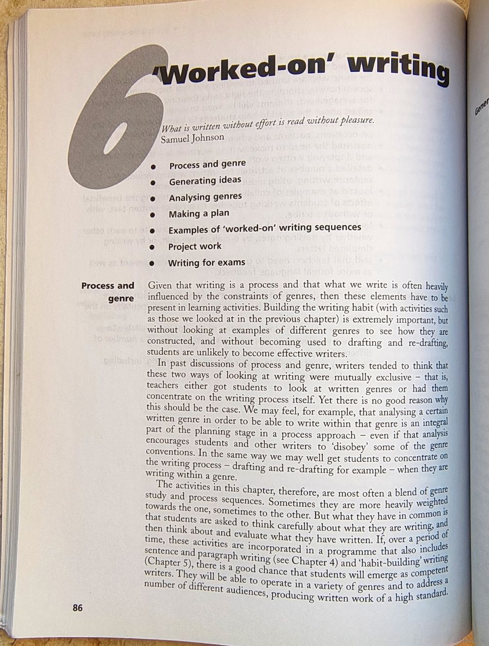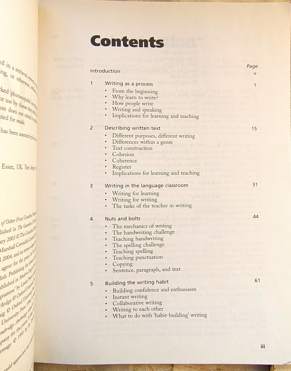 An uncomplicated analysis of the nature of writing, particularly in terms of process, product and genre Discussion of the practical implications of teaching the theory of writing Descriptions of a broad spread of writing tasks, simple and extended, to help teachers select those that will be most effective in developing their students' writing skills