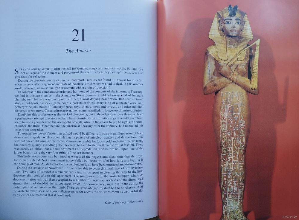 Отпечатано в Японии. На англ. яз. Большой энциклопедический формат. Мелованный альбом. Ляссе. Тираж 1000 экз. 248 стр. Howard Carter (Author), Harry Burton (Photographer). Открытие гробницы египетского фараона Тутанхамона (XIV в. до н.э.), в 1922 году стало важной вехой в истории археологии. История этого открытия, впервые опубликованная по частям в период с 1923 по 1933 год, здесь рассказана Говардом Картером, руководившим раскопками. Он не только блестяще описывает жизнь и смерть фараона 18-й династии, но и передает чувство благоговения и восторга, которые охватили исследователей, когда гробница открыла свои необычайные богатства.