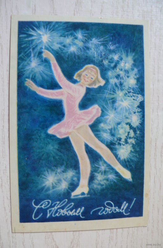 Храмцова Г., С Новым годом! 1972, подписана (коньки, фигуристка).