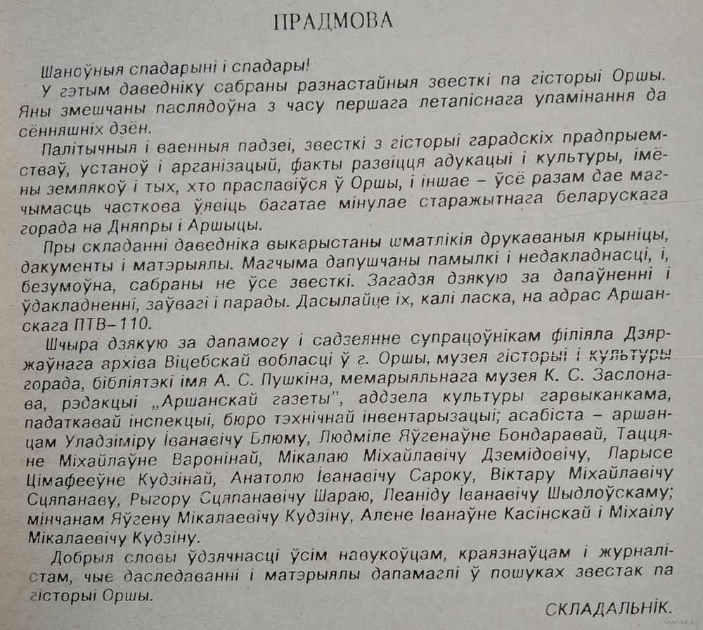 Храналогія гісторыі Оршы. Складальник А. М. Кудзін. Орша. Аддзел культуры Аршанскага гарвыканкама. 1992 г. 102 с. Мяккая вокладка.