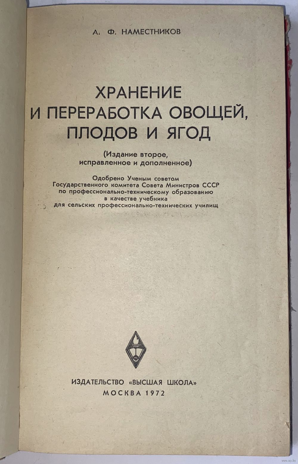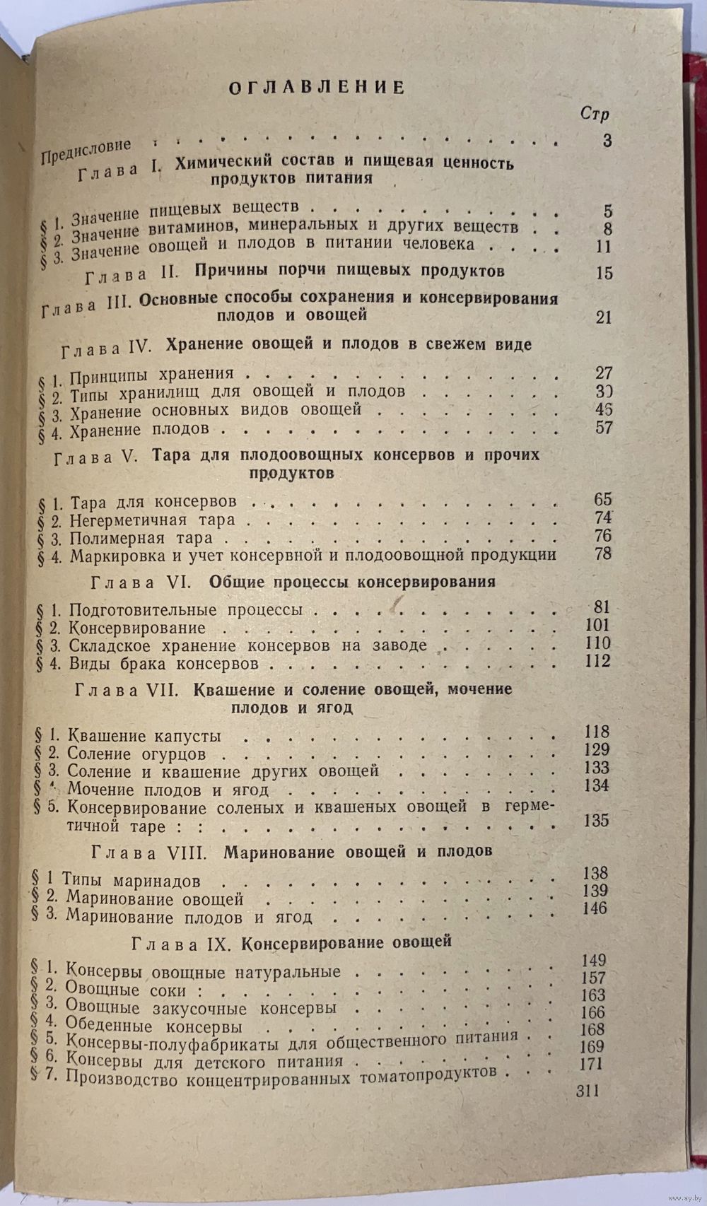В учебнике изложены основные положения технологии производства наиболее массовых и распространенных видов плодоовощной продукции; даны необходимые сведения о технологическом оборудовании, главным образом о применяемом на предприятиях данного типа; кратко рассмотрена сущность процессов, происходящих в продуктах во время их хранения и переработки. В книге приведены краткие сведения о более прогрессивных методах и процессах, чем те, которые приняты в настоящее время на рядовых предприятиях со средним уровнем технической оснащенности.