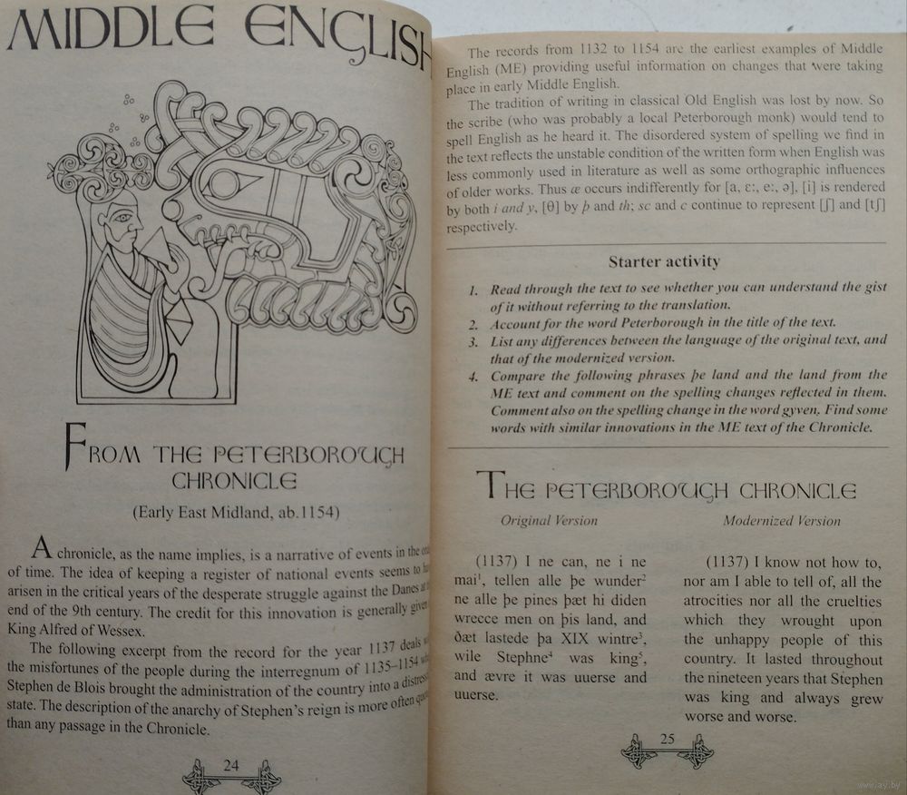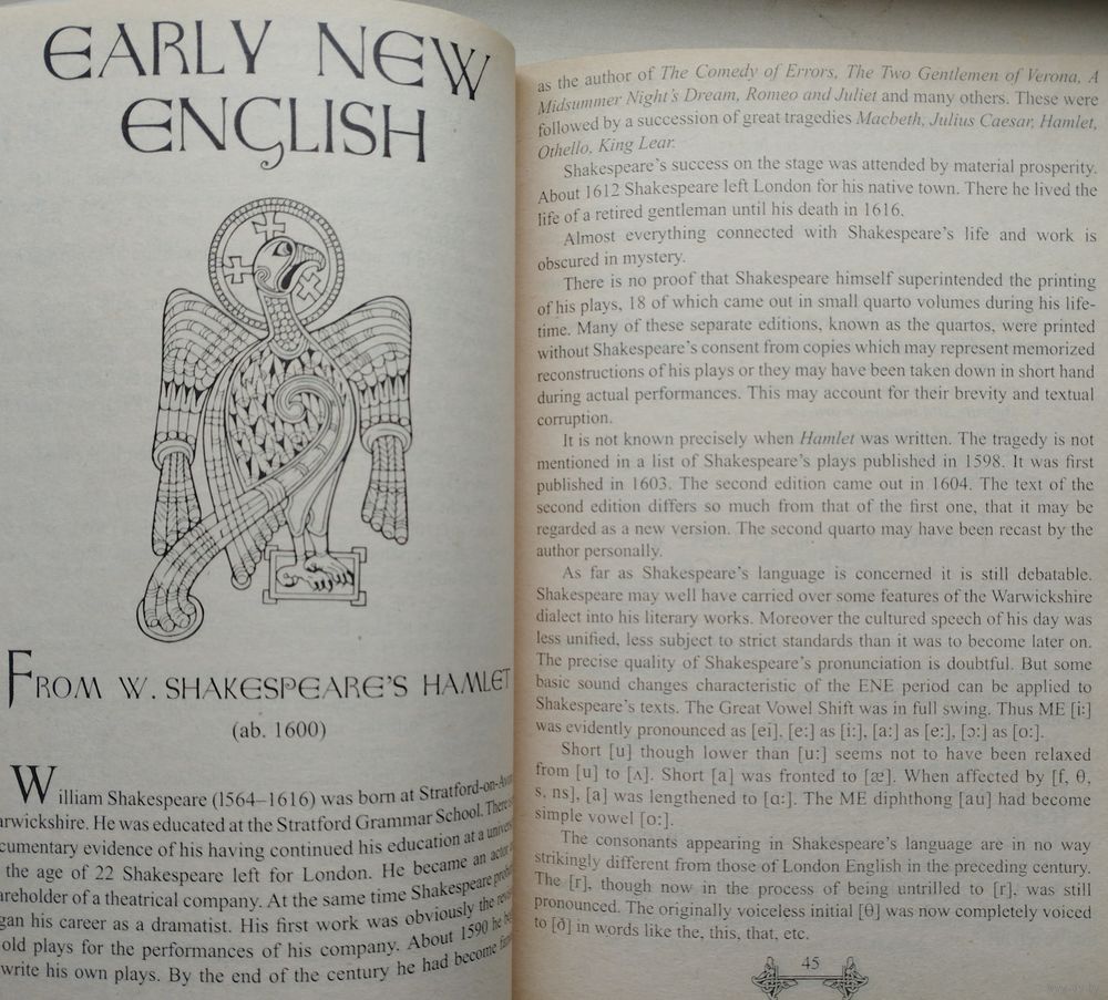 Большой формат. Тираж 1000 экз. 160 стр. Хрестоматия содержит тексты на древнеанглийском языке, английском языке среднего периода и новоанглийском языке, грамматический справочник словоизменения английского языка древнего и среднего периодов и уникальный историко-этимологический словарь. Выбор текстов и порядок их расположения позволяют проследить общие закономерности развития английского языка в многообразии его форм на протяжении периода с VII по XVII в.