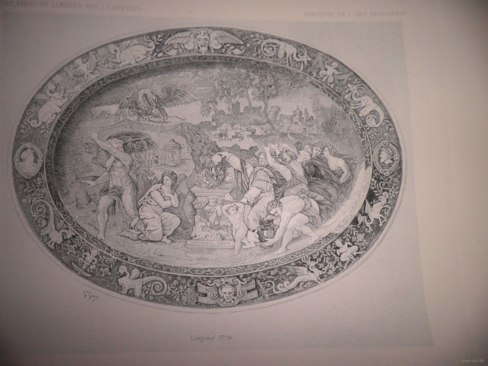 яжелый формат фолио, 40 на 32 см, 15,5 на 12 дюймов. 15 фунтов, с футляром. vii, 336 стр., с 60 иллюстрациями, 48 из которых — цветные хромолитографии, а некоторые из них — двухстраничные. Великолепный обзор декоративно-прикладного искусства, затрагивающий мебель, стекло, фарфор, фаянс и керамику, эмаль, изделия из металла, ткани и т. д. Поистине великолепная и величественная работа, и этот экземпляр полностью соответствует ей, с его полуфиолетовым сафьяном на мраморных досках, которые сами по себе необычайно толстые и прочные. Возможно, единственный незначительный дефект заключается в том, что кожа корешка выгорела на солнце до коричневого цвета, но разница в цвете с кожей досок вряд ли будет смущать. Позолоченные края по всему периметру, и безупречная внутренняя часть. С футляром из ткани и сафьяновой отделкой.
