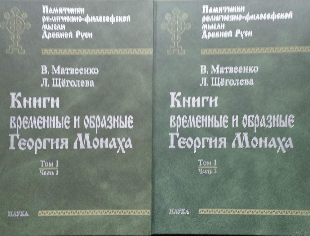 Цена за 2 тома. Большой энциклопедический формат. Тираж 850 экз. 640+262 стр. Книги временные и образные - непереводимое название древнерусского памятника, известного как Временник Георгия Монаха, или перевод византийской хроники, известной в науке как Хроника Георгия Амартола. Публикуется по древнейшему списку -Троицкой (Тверской) рукописи нач. XIV в. (РГБ. фонд 173/1 МДА 100). Рукопись содержит только часть Хроники (обрывается на событиях 553 года). Часть 1 тома 1 содержит интерпретированный текст рукописи: указаны добавления сравнительно с греческим параллельным текстом. Перевод выполнен методом сплошного сопоставления параллельных мест византийского и славяно-русского текстов, с разметкой пропусков и вставок и указанием на смысловые смещения в тексте древнерусского памятника сравнительно с византийским. Отмечены библейские цитаты и источники компиляции. Астериском помечены слова, поясняемые в комментарии (Том 2 Часть 2 настоящего издания). Участие обоих авторов - равное по всем аспектам перевода и исследования. Часть 1 тома 2 включает вводные статьи авторов, русский перевод, именной и географический указатели, указатель цитируемых мест Священного писания.