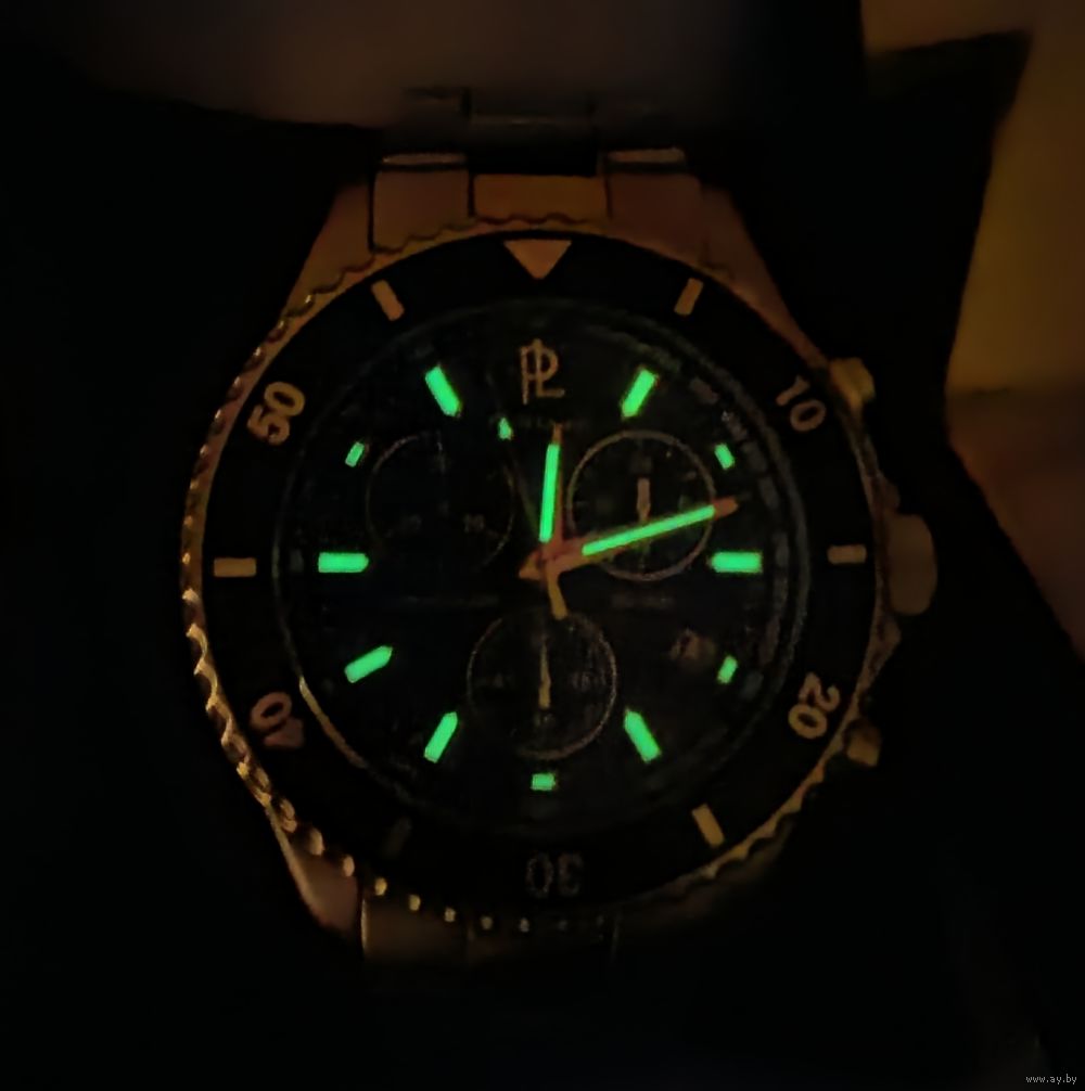 | хронограф (малая секундная стрелка) работает и обнуляется, дата меняется. | |
