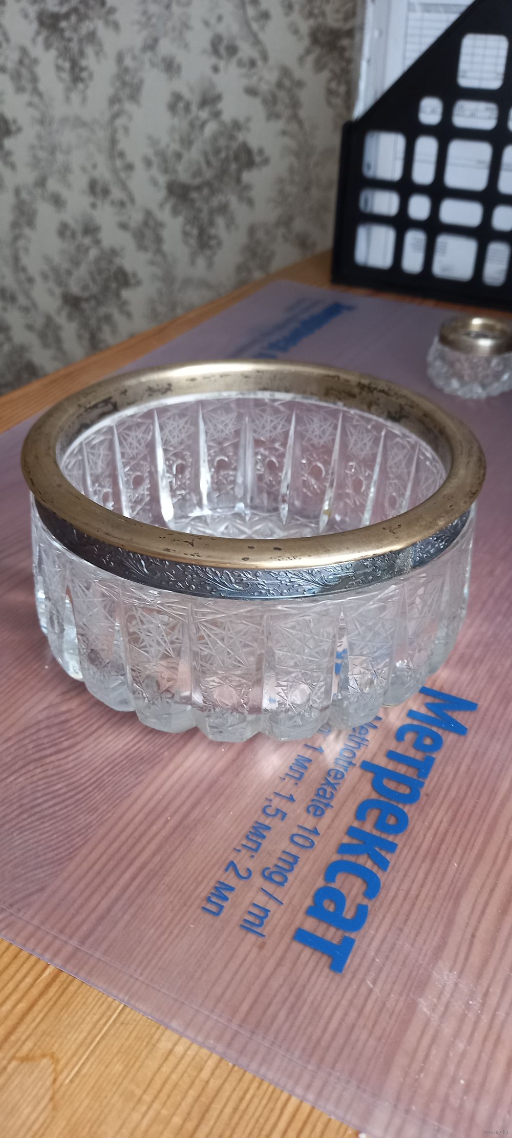 Хрустальна конфетница с серебром 875пр. МЮЗ. Диаметр14 см, высота 7см. С рубля