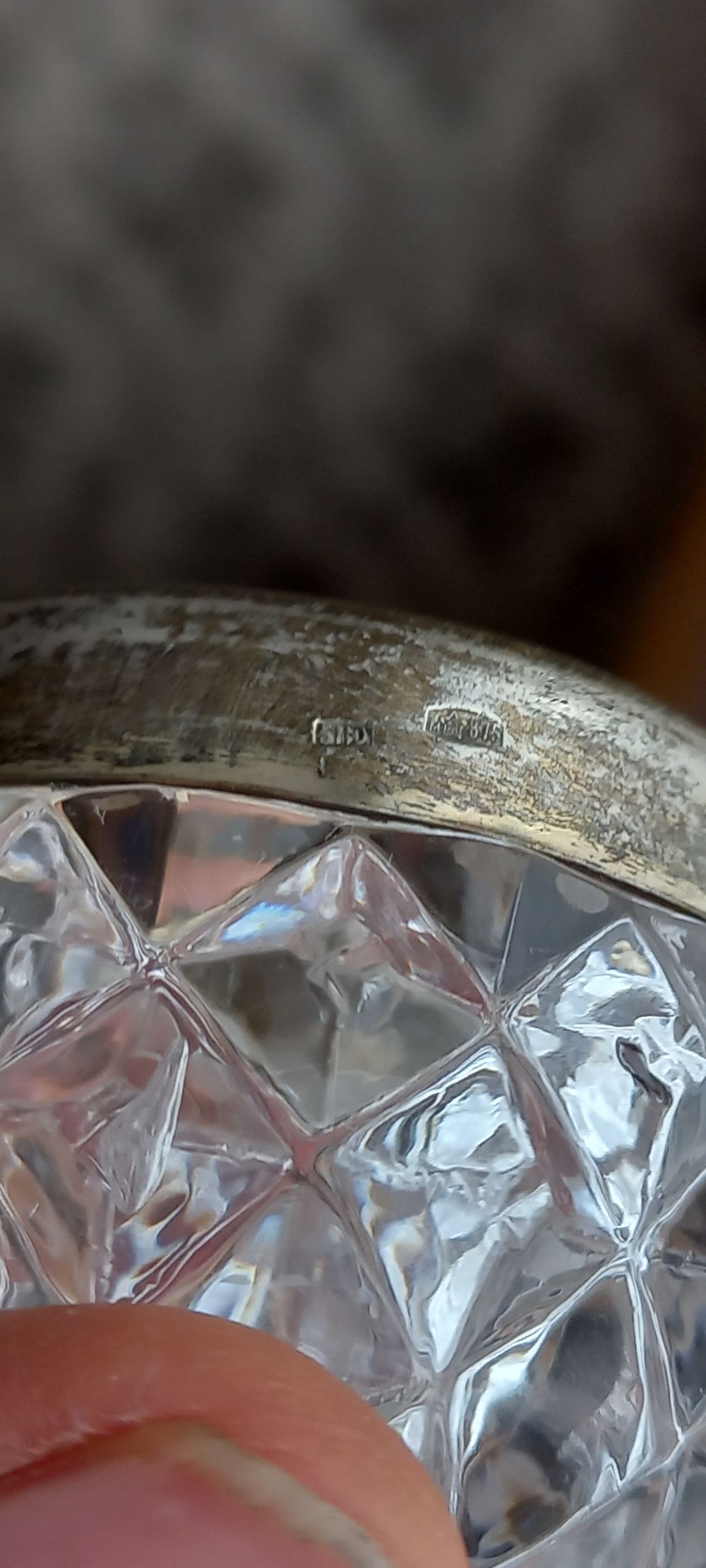 Хрустальна солонка с серебром 875пр. МЮЗ. Диаметр 5см, высота3,5 см. С рубля