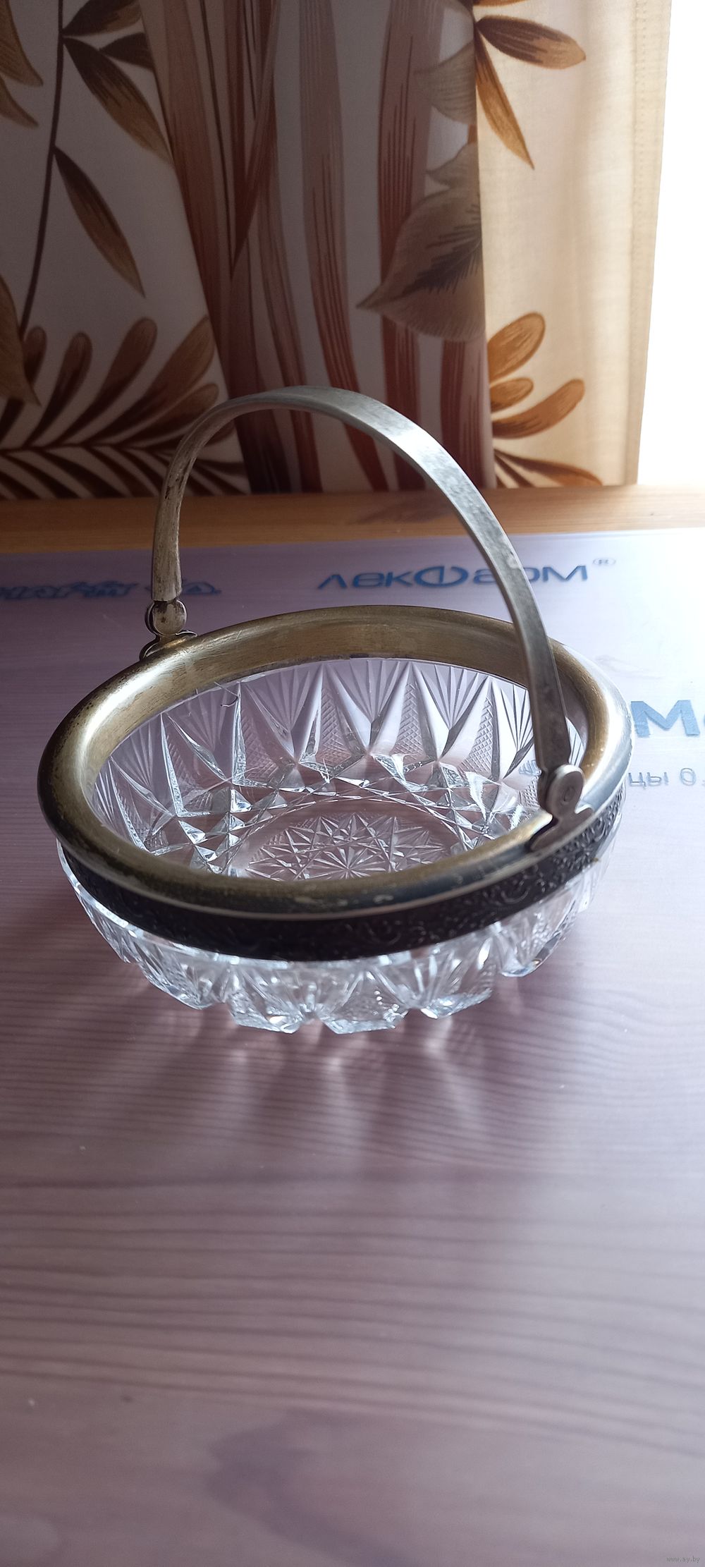 Хрустальная конфетница с серебром 875пр. Диаметр 12 см, высота 4см. МЮЗ. С РУБЛЯ