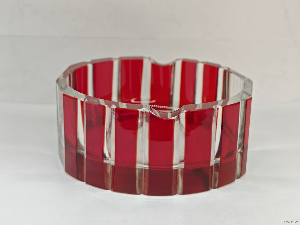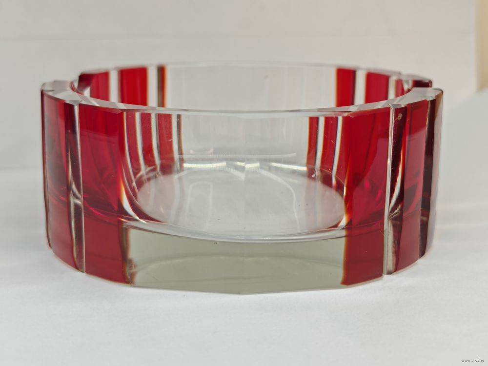 Хрустальная пепельница "Нёман" Красное стекло. С рубля