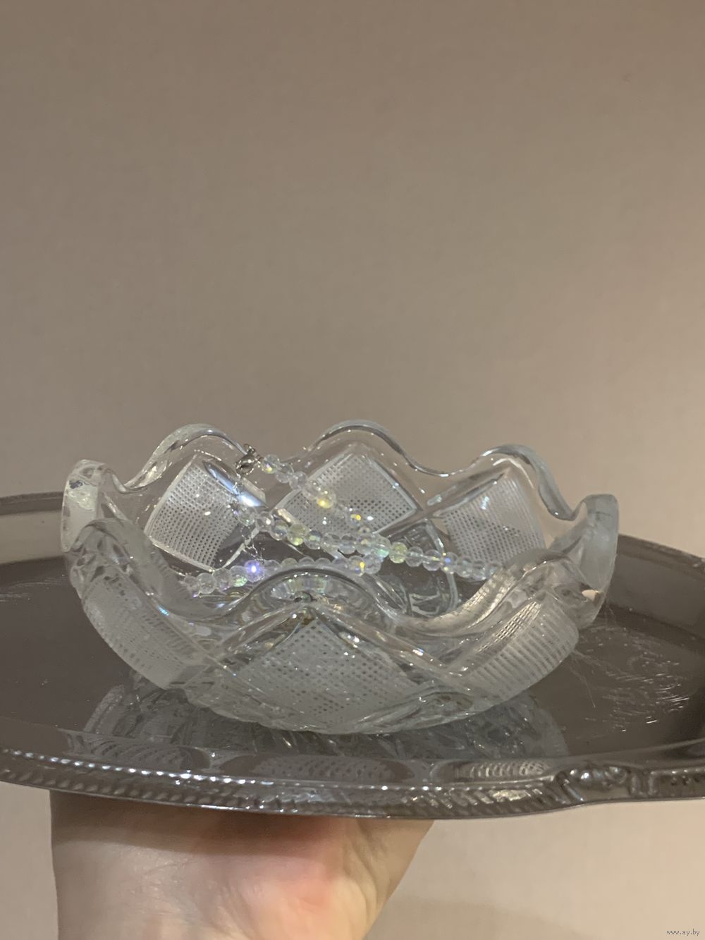 Могут использоваться и как для украшений на будуарный столик, и как мелочницы, и как пепельниц. Хрустальное очень интересное по дизайну, звонкий и мелодичный хрусталь, достаточно тяжеленькое. ЦЕНА за хрустальное - 25 руб., за стеклянное - 20 руб.
