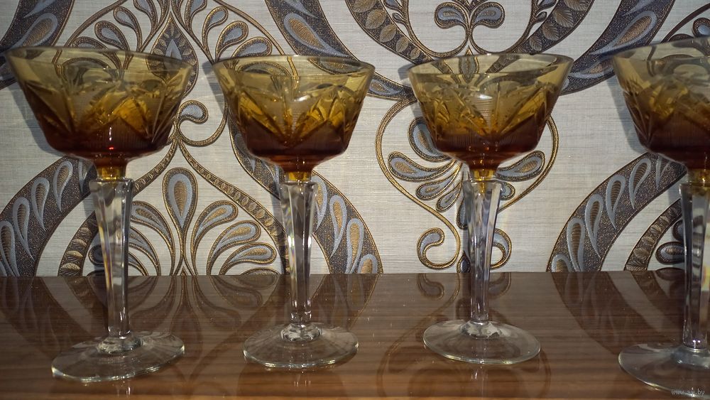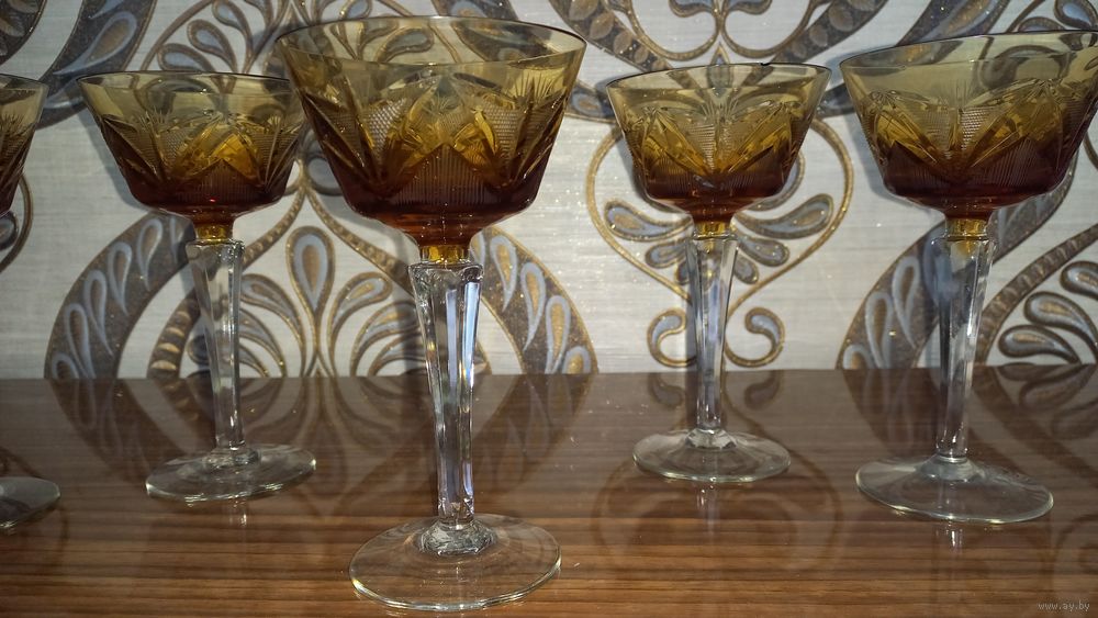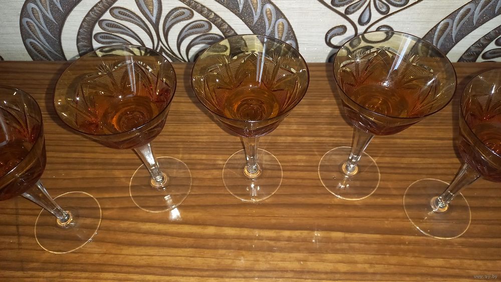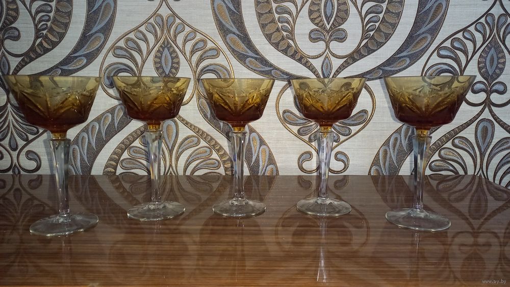 5 хрустальных фужеров. Германия. 20 век. Высота 16 см.