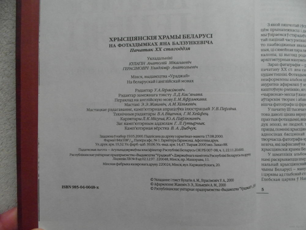 Хрысціянскія храмы Беларусі. На фотаздымках Яна Балзункевіча. Пачатак ХХ стагоддзя. На беларускай мове і английском языке. 2000 г.