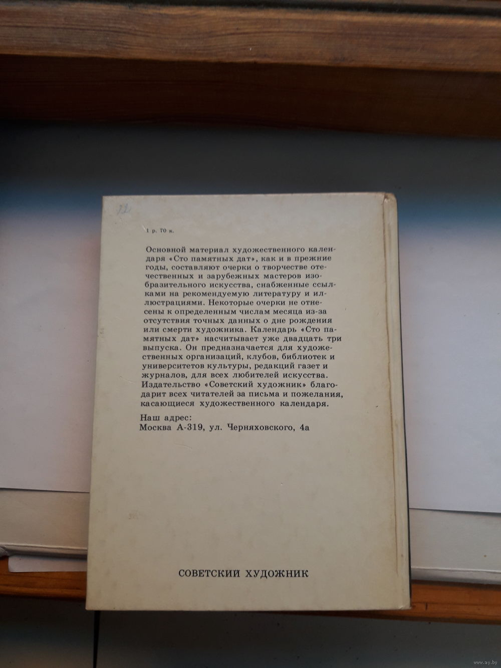 Художественный календарь Сто памятных дат 1989