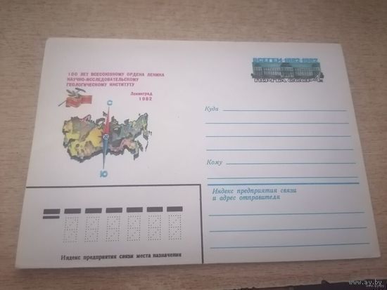 Художественный маркированный конверт СССР 100 лет всесоюзному ордена Ленина научно-исследовательскому геологическому институту Ленинград 1982и