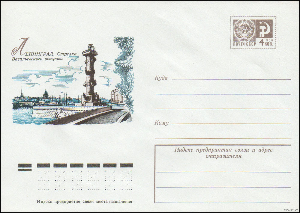 Художественный маркированный конверт СССР N 10126 (20.11.1974) Ленинград. Стрелка Васильевского острова