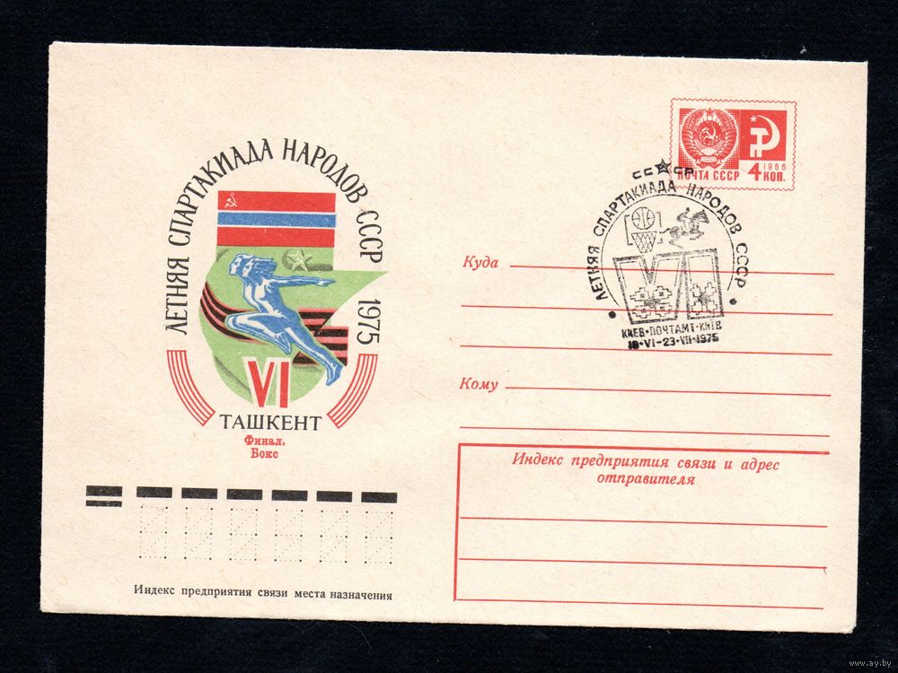 Художественный маркированный конверт СССР N 10288 (31.01.1975) VI летняя Спартакиада народов СССР 1975 Ташкент Финал. Бокс