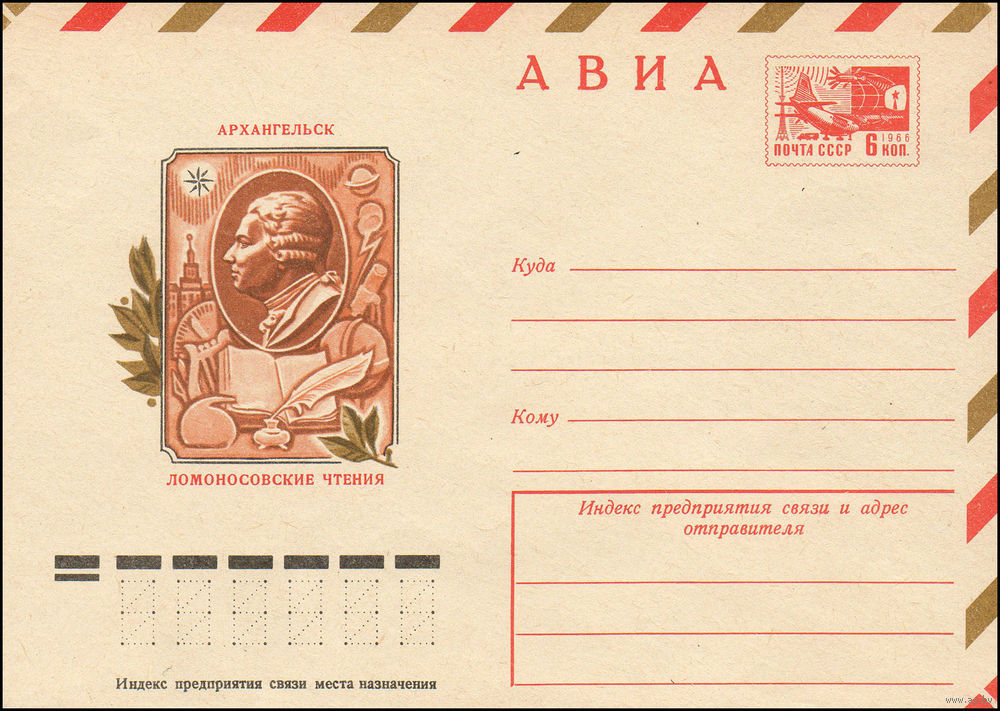 Художественный маркированный конверт СССР N 10561 (30.05.1975) АВИА Архангельск Ломоносовские чтения