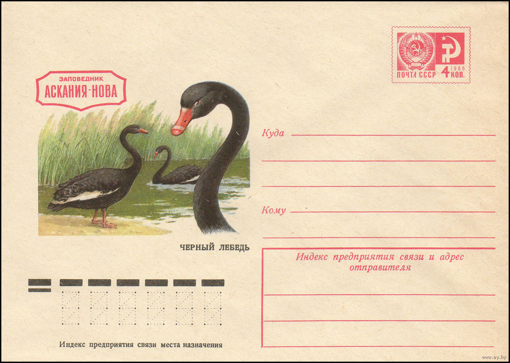 Художественный маркированный конверт СССР N 10568 (04.06.1975) Заповедник Аскания-Нова Черный лебедь