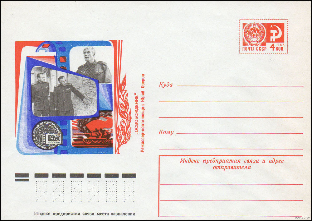 Художественный маркированный конверт СССР N 10593 (11.06.1975) Девятый международный кинофестиваль Москва 1975 "Освобождение" Режиссер-постановщик Юрий Озеров
