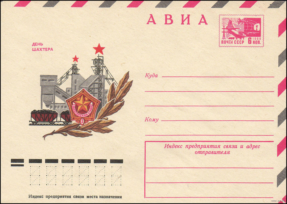 Художественный маркированный конверт СССР N 10625 (24.06.1975) АВИА День шахтера
