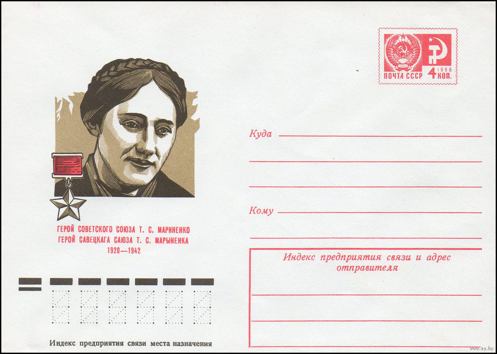 Художественный маркированный конверт СССР N 10643 (01.07.1975) Герой Советского Союза Т.С. Мариненко 1920-1942
