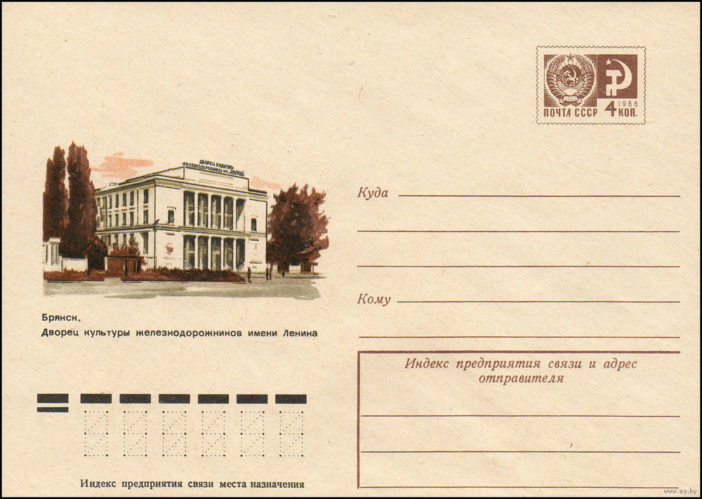 Художественный маркированный конверт СССР N 10658 (08.07.1975) Брянск. Дворец культуры железнодорожников имени Ленина