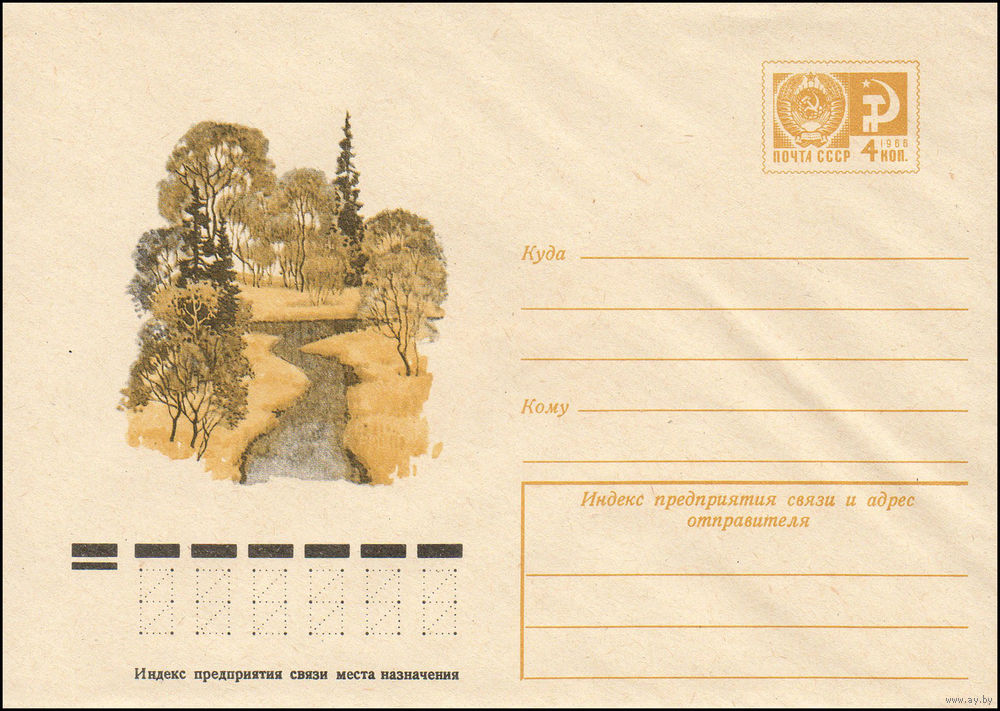 Художественный маркированный конверт СССР N 10784 (04.09.1975) Осенний пейзаж с речкой
