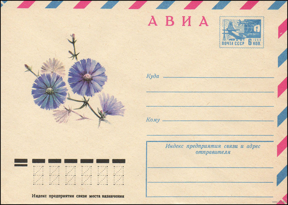 Художественный маркированный конверт СССР N 10803 (09.09.1975) АВИА Цикорий