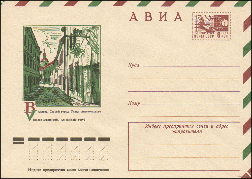 Художественный маркированный конверт СССР N 10832 (30.09.1975) АВИА Вильнюс. Старый город. Улица Антокольского