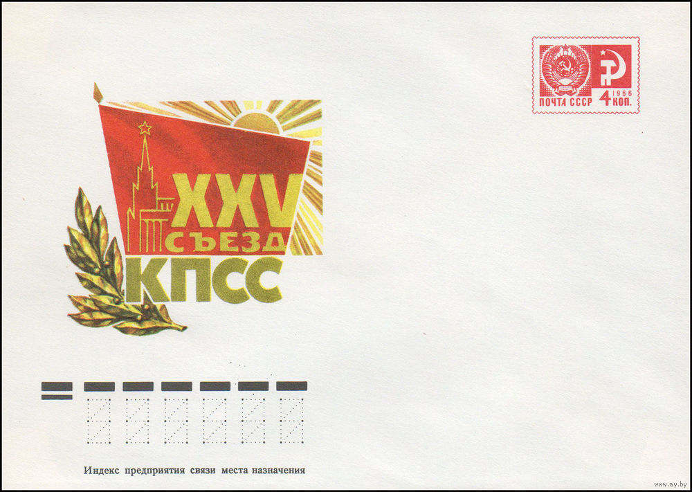 Художественный маркированный конверт СССР N 10862 (21.10.1975) XXV съезд КПСС