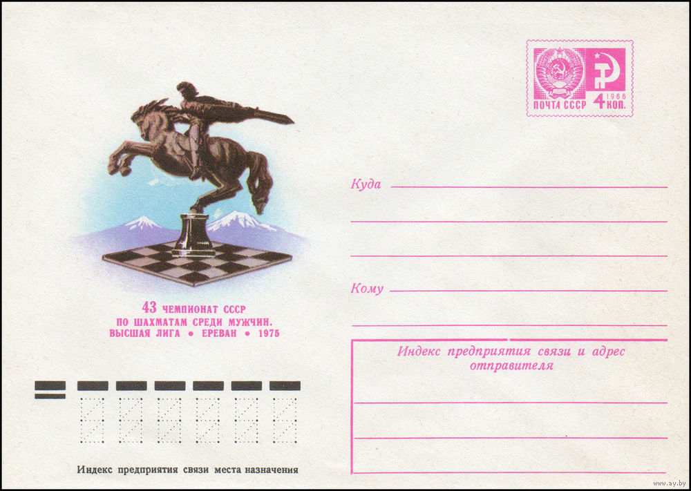 Художественный маркированный конверт СССР N 10900 (05.11.1975) 43 Чемпионат СССР по шахматам среди мужчин Высшая лига Ереван 1975