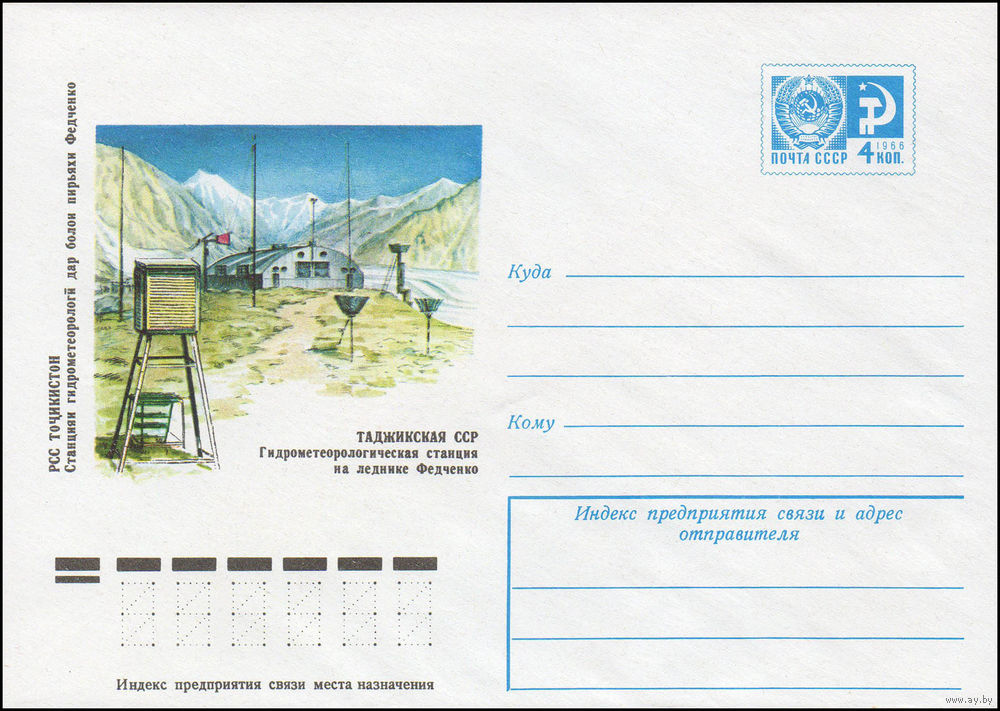 Художественный маркированный конверт СССР N 11098 (05.02.1976) Таджикская ССР Гидрометеорологическая станция на леднике Федченко