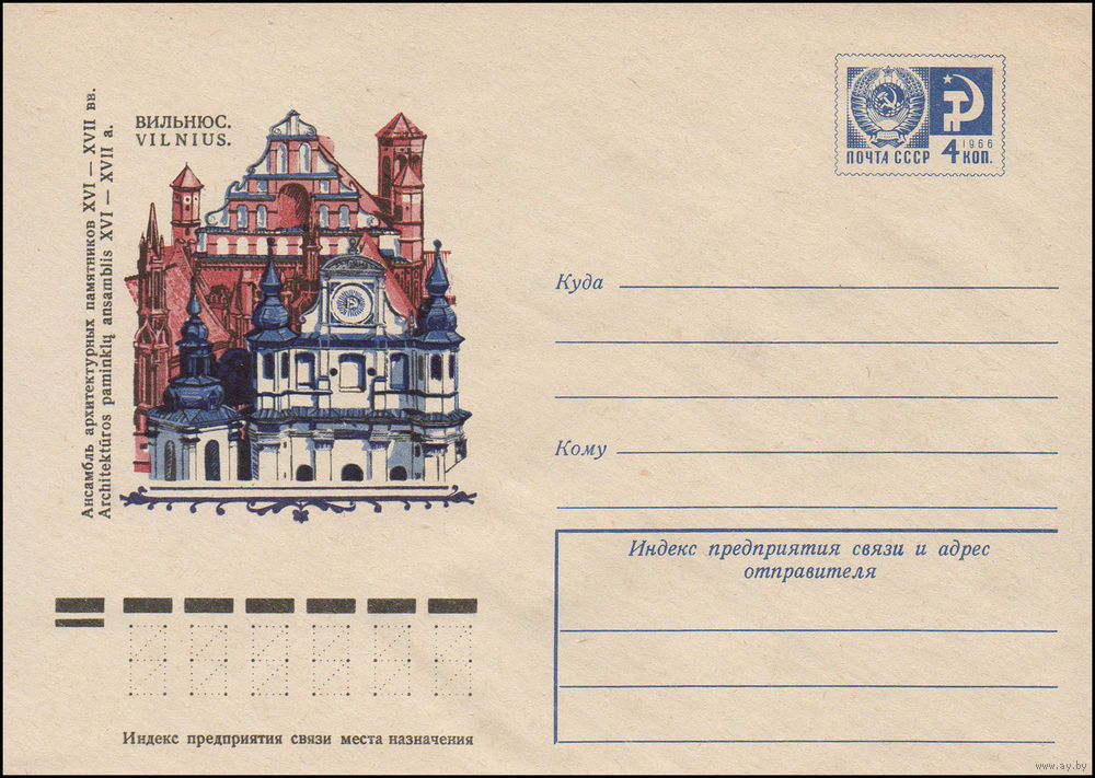 Художественный маркированный конверт СССР N 11099 (09.02.1976) Вильнюс Ансамбль архитектурных памятников XVI-XVII вв.