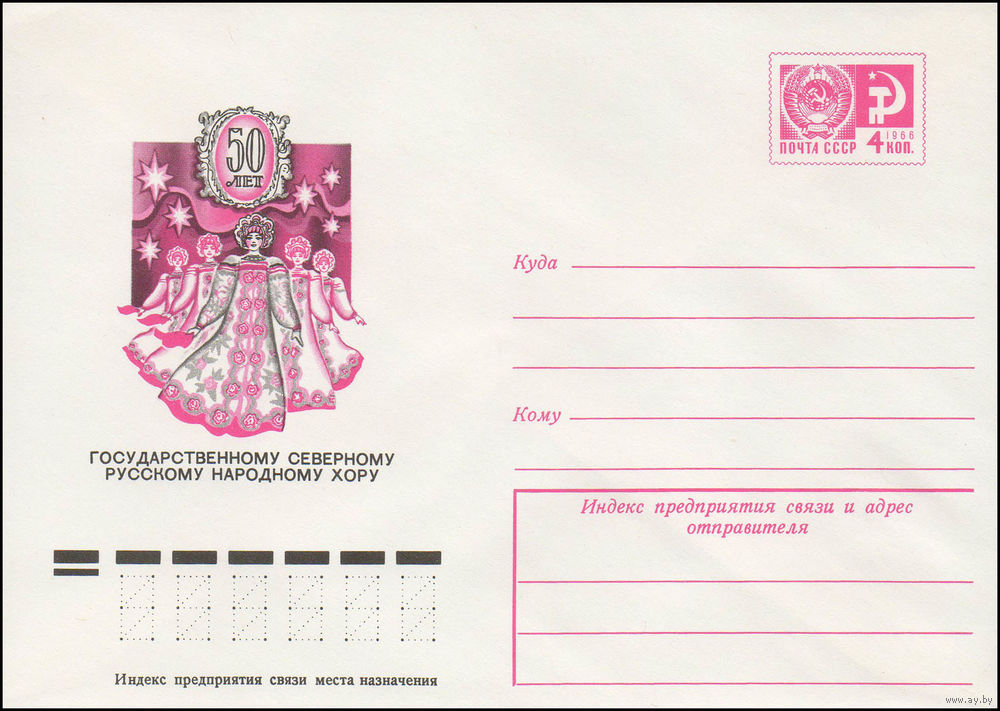 Художественный маркированный конверт СССР N 11126 (12.02.1976) 50 лет Государственному северному русскому народному хору