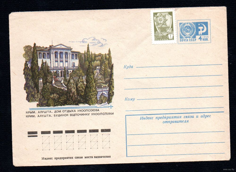 Художественный маркированный конверт СССР N 11157 (24.02.1976) Крым. Алушта. Дом отдыха Укоопсоюза